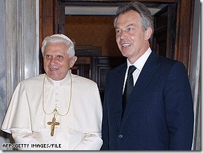 Officially! Tony Blair now is a Catholic! The former British prime time was converted from the Anglican to the Catholic faith in a Mass last night at a chapel in London presided by Cardinal Cormac Murphy-O'Connor who is the head of Catholics in England and Wales. Blair, formerly a member of the Church of England, had avoided talking about his religious views while in office for about 10 years for fear of being labeled "a nutter." Source: CNN #Tags: tony blair, catholic, anglican, christian, catholicism